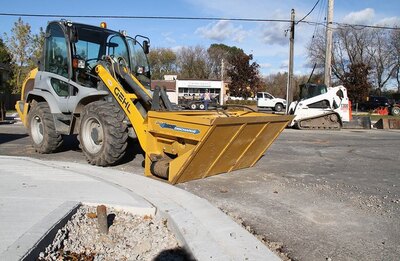 Skidsteer Grader Push-pull design for grading in forward or reverse Pneumatic swivel wheels on oscillating front axle Extendable front...