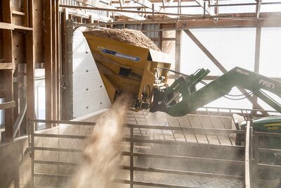 Side Discharge Straw/Lime Bucket Minimum 12 GPM required Hydraulic drive (coupled direct) Agitator prevents material bridging...