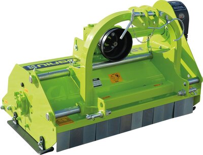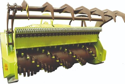 Mulcher with a wide mouth intake designed for very heavy work with pruning residues of up to 12-15 cm in olive groves, vineyards, fruit orchards,...