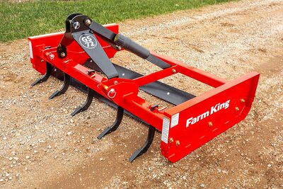GRADING SCRAPER Models 60", 72", 84" THE FARM KING GRADING SCRAPER HAS 2 MAIN FEATURES; REPLACEABLE HEAT TREATED SCARIFIER SHANKS AND...