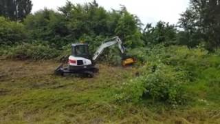 The EX30 Excavator Flail Brush Mower cuts and mulches up to 4" trees, shrubs, vegetation, grass and weeds. Used for clearing riverbanks, ditches, hillsides, utility right of ways, walking trails and more